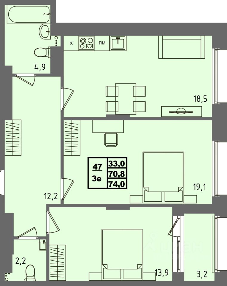 Общая площадь74 м²