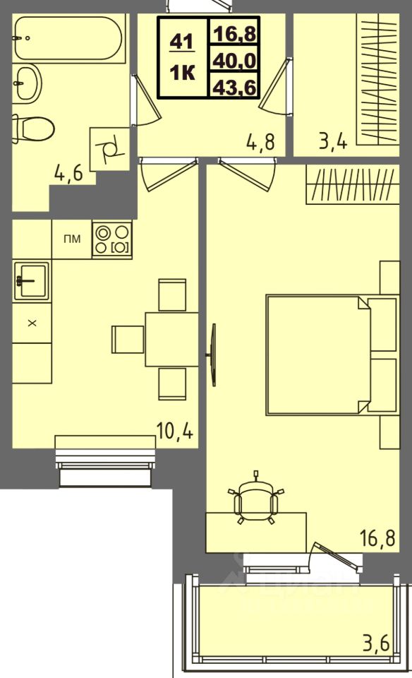 Общая площадь43,6 м²