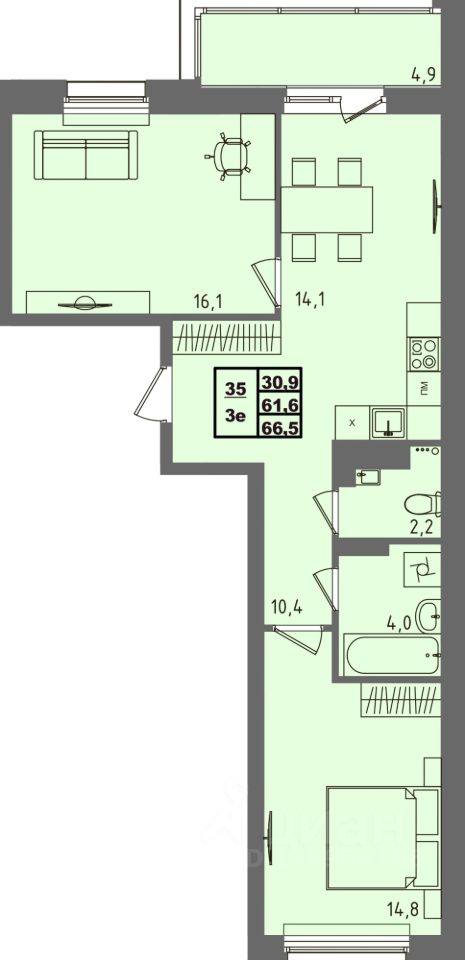 Общая площадь66,5 м²