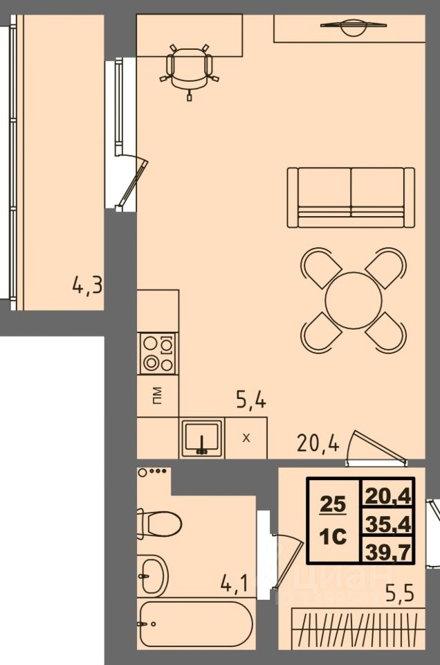 Жилая площадь20,4 м²