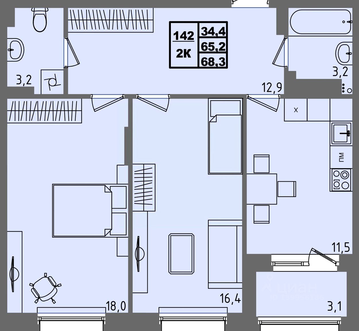 Общая площадь68,3 м²