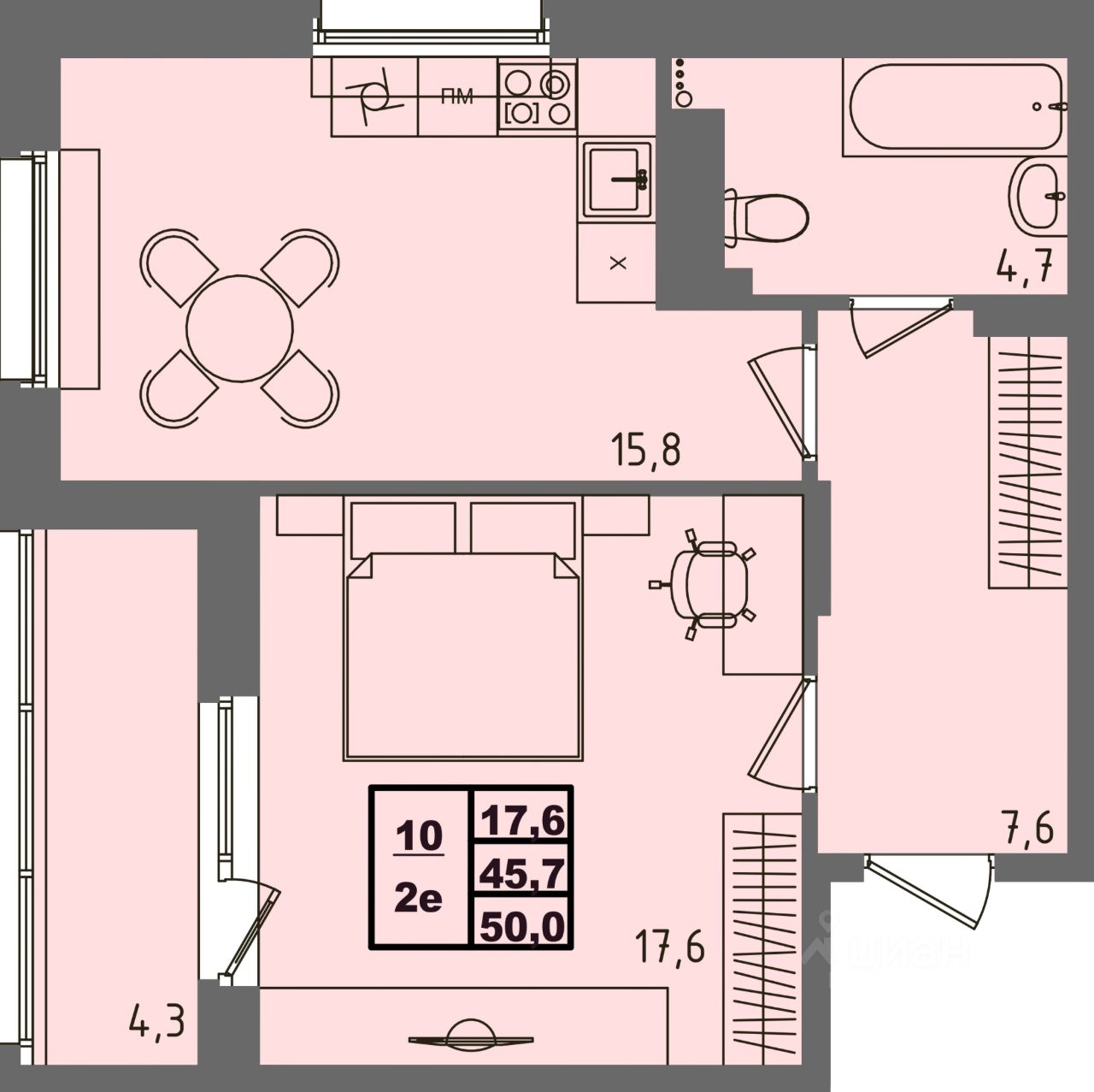 Жилая площадь17,6 м²