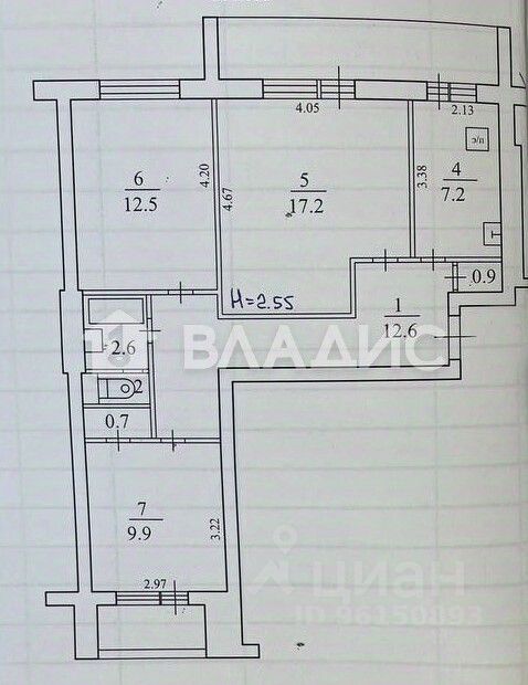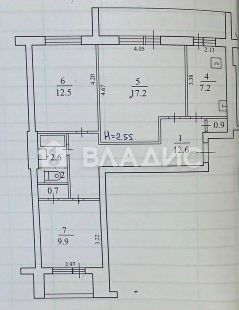 - 3 изолированные комнаты Площади комнат: 17,2+12,5+9,9 кв. м.
