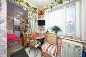 Выполнена перепланировка, соеденившая гостиную и кухню в единое светлое пространство.