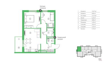Продаётся 3-комнатная квартира в строящемся доме (5.1), срок сдачи: IV-кв. 2026, общей площадью 59.53 кв.м., на 9 этаже. Новый жилой комплекс "Сампо" от застройщика "Стройинвест КСМ" органично сочетает городской комфорт и очарование жизни загородом. Здесь каждый сможет найти то, что ему необходимо: