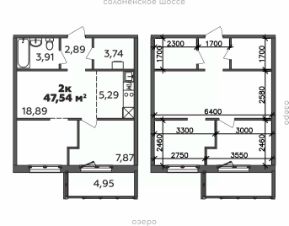 Продаётся 2-комнатная квартира в строящемся доме (Дом 19 (2 этап)), срок сдачи: I-кв. 2029, общей площадью 47.54 кв.м., на 9 этаже.