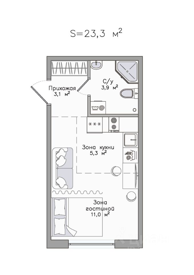 23,3 м²