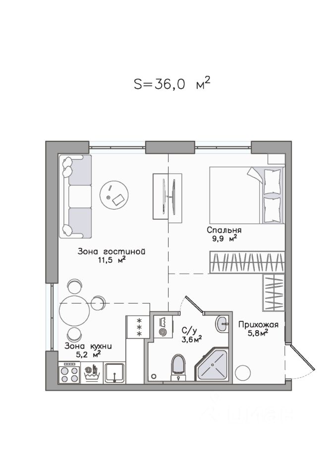 36 м²