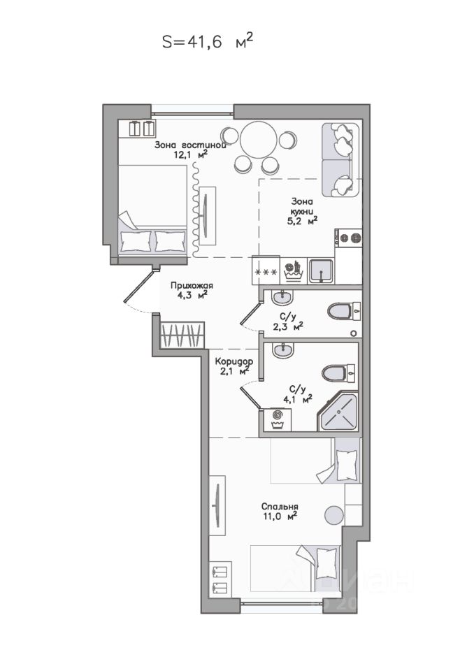 41,6 м²