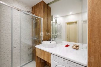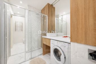 - Совмещенный санузел оснащен душевой кабиной и стиральной машиной;