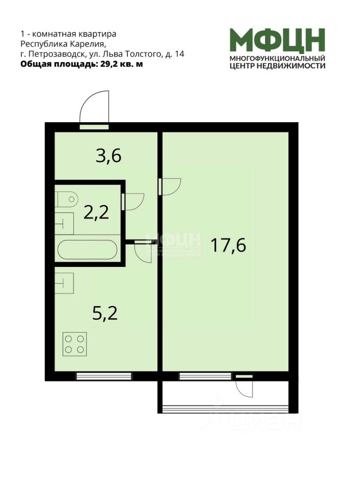 К покупке предлагается 1 - комнатная квартира, расположенная на 5-м этаже 5 - этажного дома, находящаяся по адресу: г. Петрозаводск, ул. Льва Толстого, дом 14.