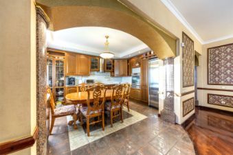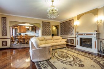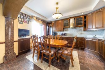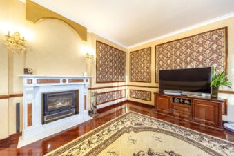 Дизайн квартиры — воплощение элегантности и благородства: камин из натурального мрамора создаёт атмосферу тепла и уюта в холодные вечера; декоративные элементы из гранита придают интерьеру неповторимую изысканность; паркет из красного дерева наполняет комнаты теплом природных оттенков; подоконники из мрамора служат стильным акцентом в общем ансамбле. Частично подогреваемые полы обеспечивают дополнительный комфорт даже в самые морозные дни.