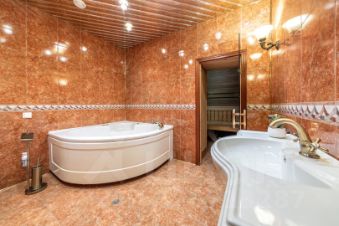 Особое внимание заслуживают два санузла общей площадью 12,7 м²: один оснащён душевой кабиной для повседневного удобства, а второй поражает своей роскошью — джакузи и собственная сауна станут вашим личным оазисом расслабления и восстановления сил после напряжённого дня.