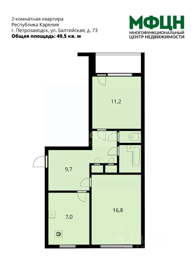 - комнаты: 16,8 и 11,2 кв. м;