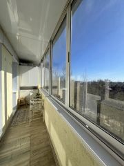 * Большая и светлая кухня с выхoдoм нa заcтeклённую лоджию.