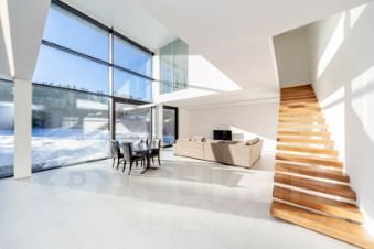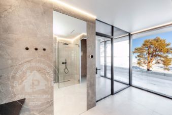 — Окна: профильная система Alutech и мультифункциональные стеклопакеты. Панорамное остекление не только наполняет помещение естественным светом, но и добавляет помещению роскоши. "Стеклянная стена" дарит хозяевам потрясающий вид из окон дома и чувство безграничного пространства.