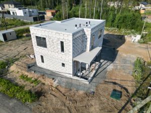 — Планировка: 1 этаж - тамбур, прихожая зона, кухня-гостиная, комната, санузел, хоз.комната с отдельным входом. 2 этаж - три раздельные комнаты, холл с гардеробной и санузел.