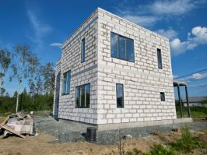 — Стены снаружи: вентилируемый утепленный фасад 50 мм, комбинированный, штукатурка + деревянный планкен.