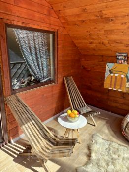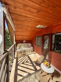Летний домик (18 м²) с мини-кухней, газовой плитой и летним душем с горячей водой идеально для гостей или уединенного отдыха.