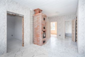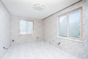 Фундамент УШП, стены имеют толщину 20 см., снаружи дом обшит имитацией бруса, а внутри отделка выполнена в стиле, соответствующем современным тенденциям, включая гипсокартон, поклеены обои, на полу постелен керамогранит (плитка). Окна сделаны из энергосберегающего стеклопакета. Дом оборудован всем необходимым для комфортной жизни круглогодично.