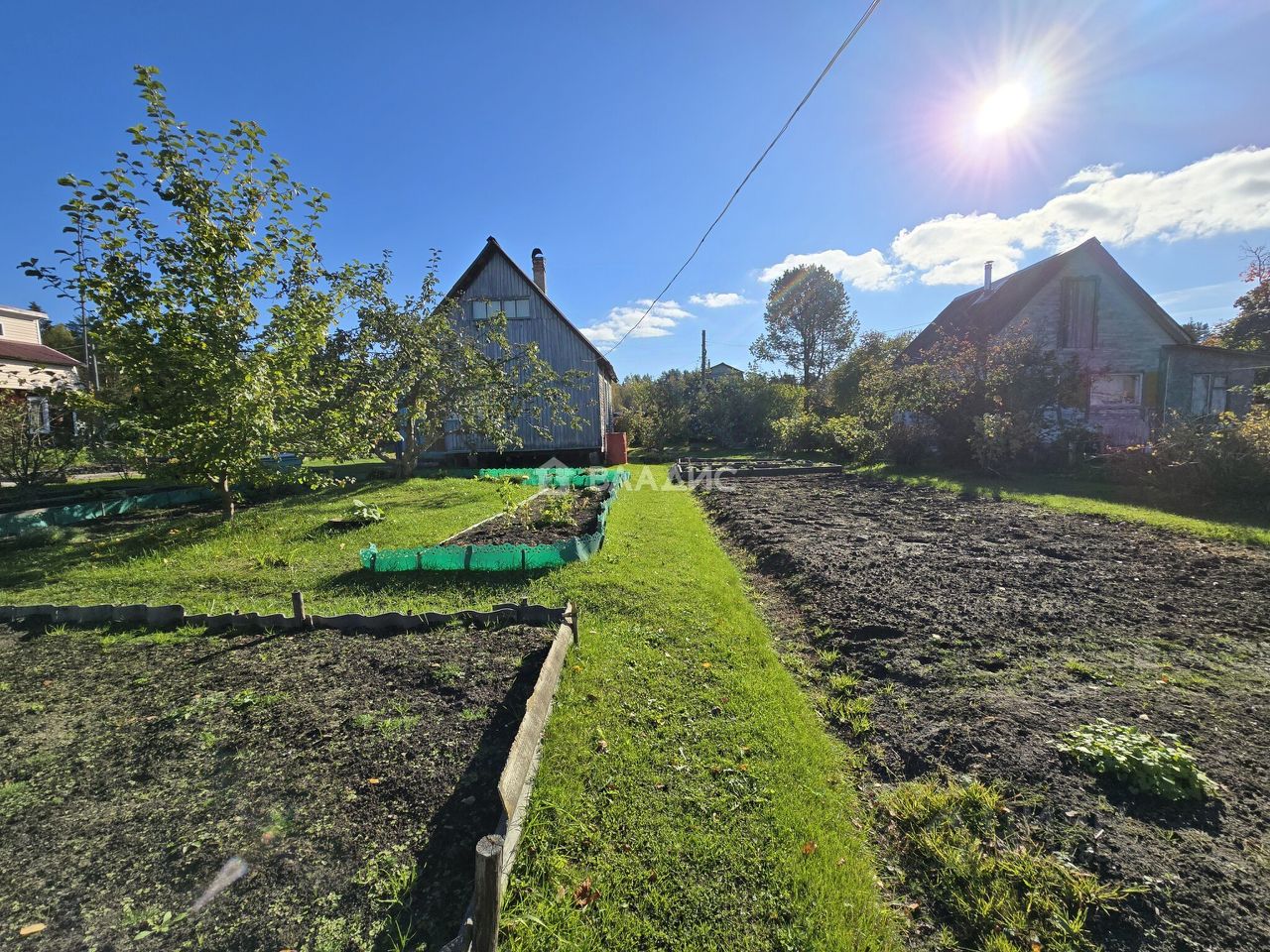 грядки, многолетние кустарники и плодовые деревья