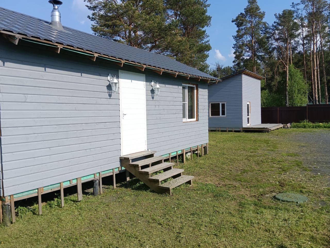- Домик-баня 6*8, в т.ч. терраса 2*5, построен в 2021-2022гг. на свайном фундаменте по каркасной технологии. Внутри все из экологически чистых материалов (дерева). Отопление - водяной теплый пол (залита бетонная стяжка). Водонагреватель на 200л. Отдельный вход в техническое помещение. Мини кухня с чайником, плиткой, микроволновкой, холодильником, посудой. Раздвижной стол. ТВ. Спальня с двумя односпальными кроватями. Раскладной диванчик в комнате отдыха (спальное место 130см х 200см). Туалет с умывальником. Душ на двух человек. Обливное устройство. В парилке электрическая печь и дровяная печь с закрытой каменкой. Парилка на 6 человек (максимум 8).