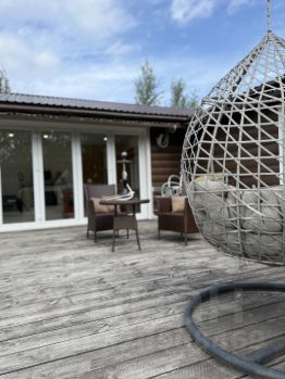-Просторная зона отдыха-терраса где можно устраивать вечера на природе .