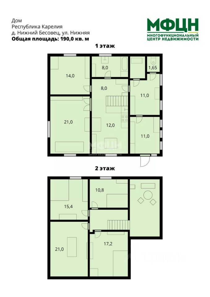 общая площадь: 190 кв. м, жилая: 120 кв. м;