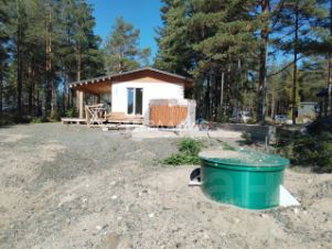 Дом построен из блочного материала на монолитном фундаменте, что гарантирует его надёжность и долговечность. Общая площадь дома с учетом террасы составляет 96,2 кв. м, из которых 28,3 кв. м — жилая площадь. Высота потолков в 3 метра создаёт ощущение простора и свободы. Дом оборудован всем необходимым для комфортного проживания: водоснабжение от скважины, отопление от индивидуального котла с теплыми полами, био - станция, чан - купель, интернет.