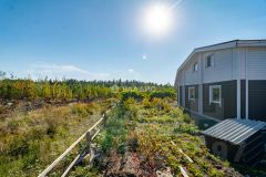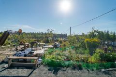 На участке плодоносящие слива, вишня, 5 сортов крыжовника, йошта, крупная чёрная смородина порядка 10 кустов, калина, яблони, груши, черноплодка, малина, клубника, ревень, многолетние цветы.