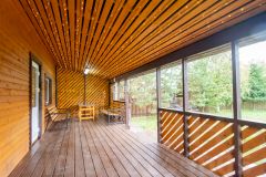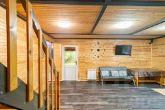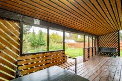 Высота потолков — 2,5 м, что придаёт пространству воздушность и свободу. В доме четыре комнаты с площадями 24,5 кв. м, 10,7 кв. м, 9,7 кв. м и 13,4 кв. м., сауна.