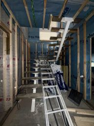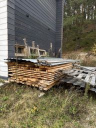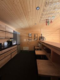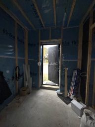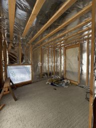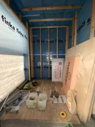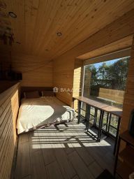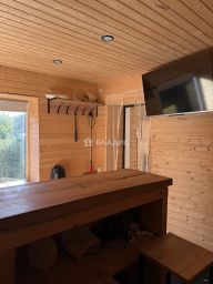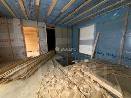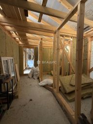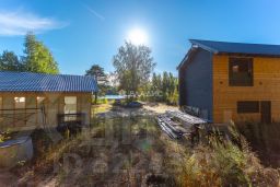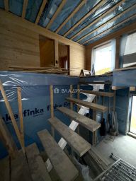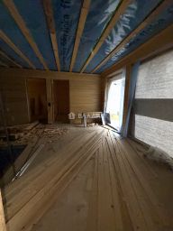 Второй дом (двухэтажный): выполнены все подводки для подключения коммуникаций, дом внутри частично обшит, в доме установлена лестница.