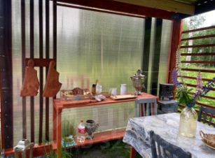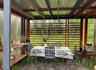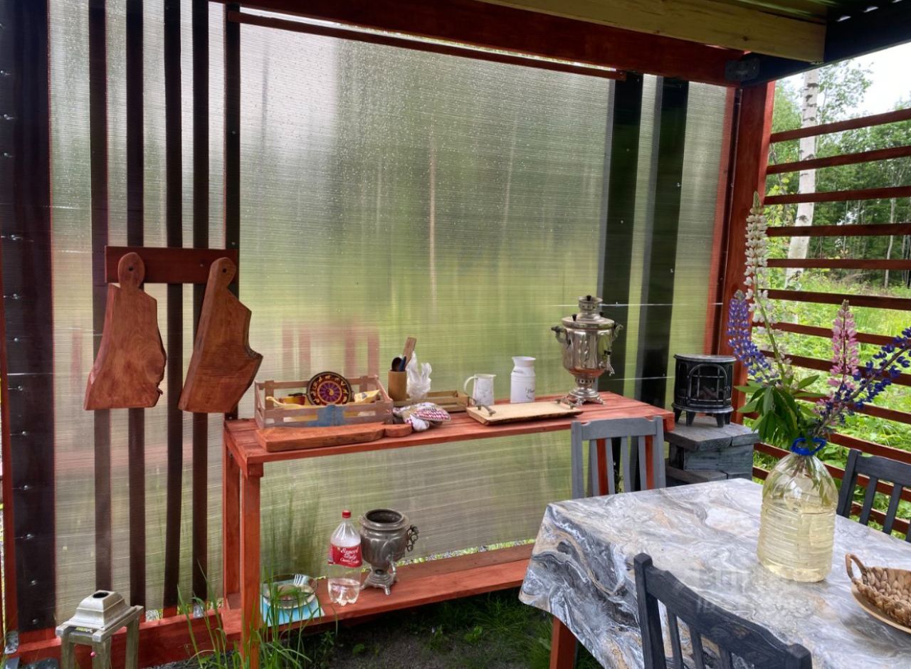 Из дома можно выйти на комфортную веранду, где приятно провести время на свежем воздухе.