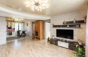 В доме 3 спальни ,просторный зал, совмещённый с кухней.