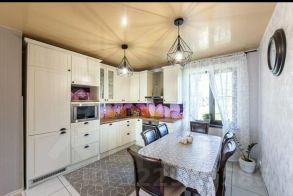 В доме остаётся финская кухня с встроенной бытовой техникой (холодильник, посудомоечная машина, микроволновая печь, индукционная варочная поверхность, духовой шкаф, вытяжка. Стол со стульями.