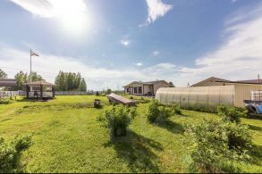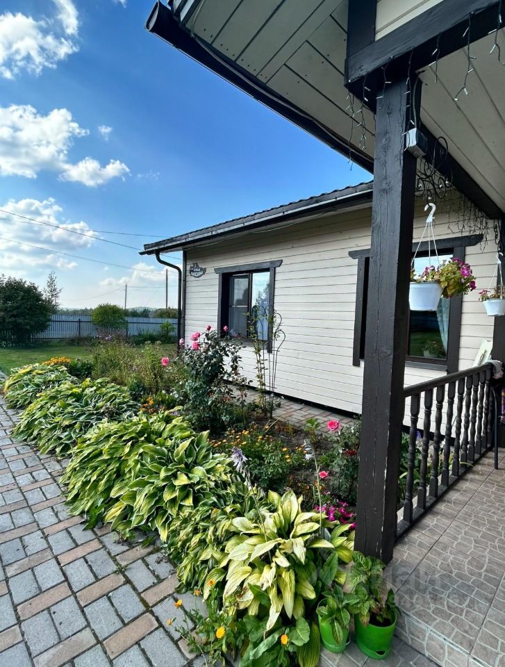 -Растут декоративные и плодовые растения, имеется теплица и грядки.