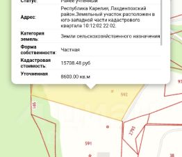 Кадастровый номер: 10:12:02 22 02:592 Территория окружены елями и соснами, в пяти минутах от участка чудесное безлюдное озеро (фото прилагаю), в 7 минутах Ладога. На участке электрический столб. Дорога не проездная. Хорошее место для глэмпинга, туристического места, садоводства, конного клуба. Сделана парковка - заезд на участок. нет времени на участок, так бы занялись сами.