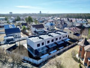 — Планировка: Первый этаж - просторная кухня-гостиная с выходом на террасу, гардеробная, санузел, коридор, тамбур, тех.помещение. Второй этаж - холл, санузел, три большие комнаты, в одной из которых располагается гардеробная.