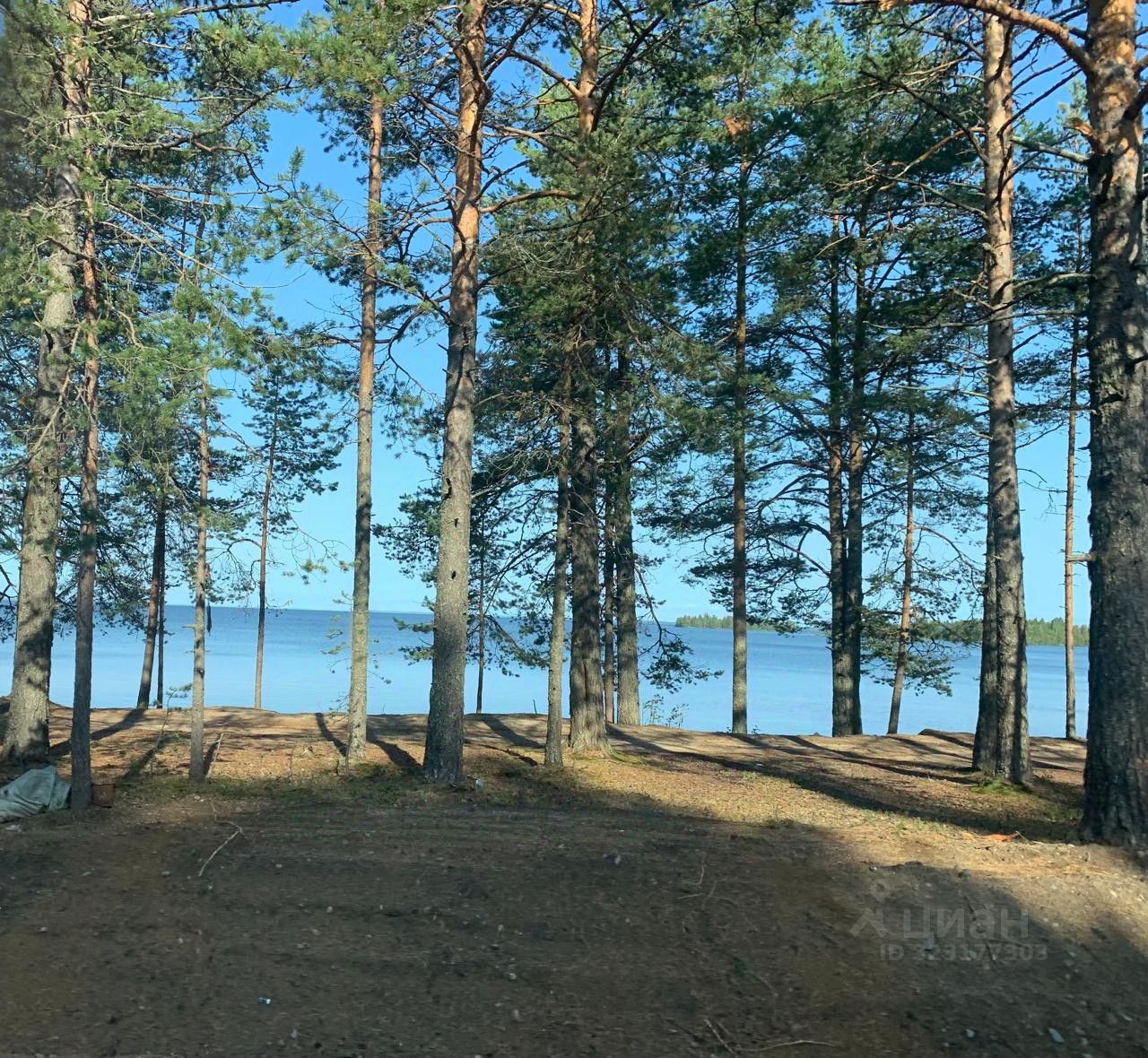 - Ровный, чистый участок на берегу Онежского озера, окруженный соснами