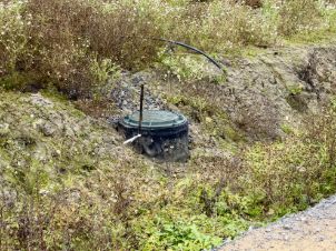На границе участка новый столб для подключения электричества, а также новые центральные сети водоснабжения и водоотведения.