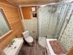 В доме вода, подается из колодца. Есть душевая кабина с тропическим душем, унитаз, стиральная машина, раковина в санузле и на кухне.