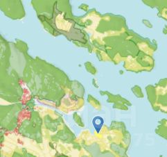 Расположен на первой линии системы озер Вуокса. Свой берег. Протяженность своей береговой линии 47 метров.