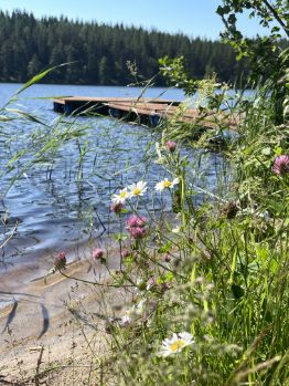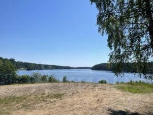Участок у озера на второй линии, выход к озеру прямо напротив участка.