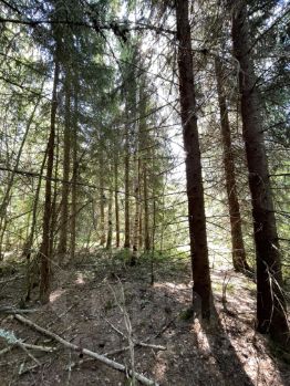 Очень живописное тихое и спокойное место, на участке шикарные вековые сосны, есть место под строительство дома, расположение очень выгодное.