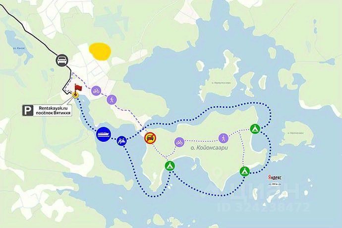 Именно в посёлке Вятиккя мы предлагаем к продаже участок 3,5 га. Он разбит на 6 небольших участков, но все они принадлежат одному собственнику. От участка до входа на заповедный остров примерно 15 минут пешком. В посёлке развивается туристический бизнес. Туристам нужны жилье и парковка для автомобилей: часто они приезжают семьями и компаниями, популярность активного отдыха в стране растёт. Любителям этих заповедных мест можно даже скооперироваться, купить наш участок и, разделив его по своему усмотрению, построить там дома и отдыхать с комфортом. Согласно Генеральному плану землепользования и застройки Куркиёкского сельского поселения, утверждённому 29.09.2025г., участок вошёл в территориальную зону садоводства, огородничества - (СД), на нём разрешено строительство жилых домов. Рассмотрим также продажу уже выделенных частей участка.