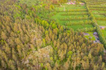 Впрочем, весь этот большой участок может служить непосредственно вашей семье. Участок в основном ровный, но выступающей своей стороной поднимается в горку, с которой открывается красивый вид. Электричество по краю участка.