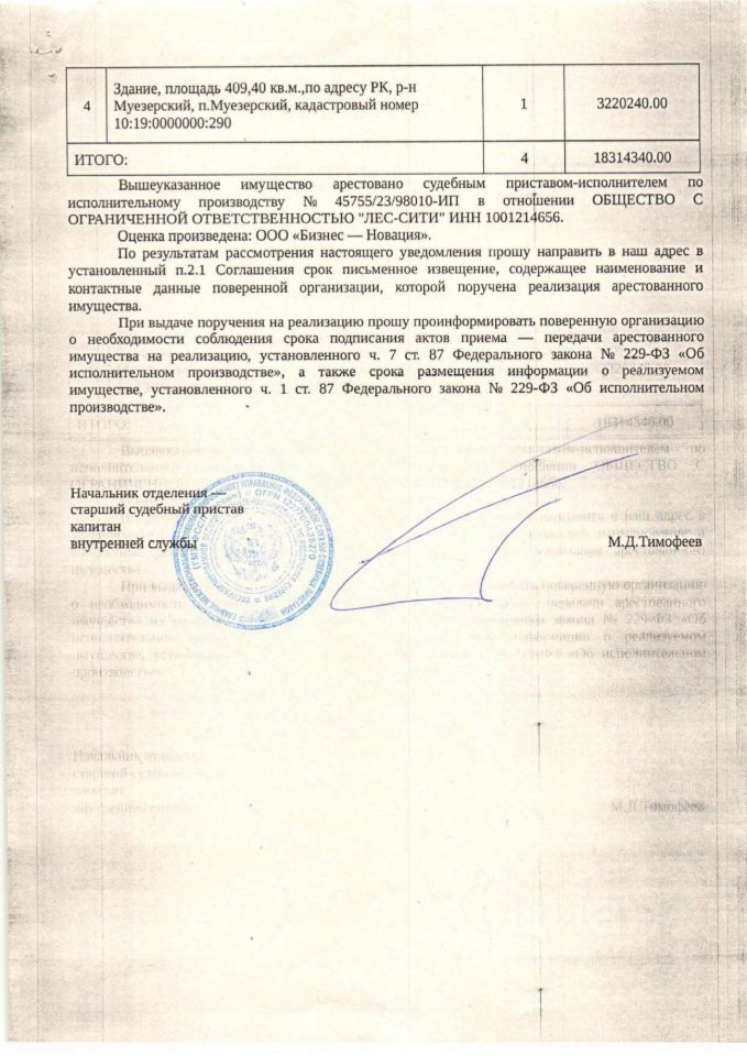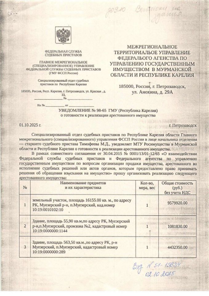 Лот 2 (Повторные торги). Земельный участок, площадью 16155, 0 кв. м. , КН 10:19:0010102:10, расположенный по адресу: Республика Карелия, р-н Муезерский, п. Муезерский. Нежилое здание, площадью 55, 9 кв. м. , КН 10:19:0000000:1144. Нежилое здание, площадью 563, 5 кв. м. , КН 10:19:0000000:289, Нежилое здание, площадью 409, 4 кв. м. , КН 10:19:0000000:290.