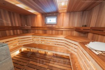 - Банный комплекс 235 кв.м., с печью на дровах, хаммамом, бильярдной зоной, соляной комнатой и просторной террасой с уличным джакузи. Есть возможность присройки круглогодичного бассейна с подогревом.;