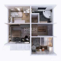 - комнаты: три отдельные спальни на втором этаже + просторная кухня-гостиная на первом;