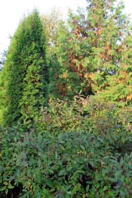 - лиственные деревья и кустарники: дуб 2 шт, береза карельская 4 шт, клен татарский. клен канадский, рябина красная, калина 3 куста, калина бульденеж, чубушник 2 куста, чубушник желтый, пузыреплодник красный 2 куста, желтый 2 куста, сирень "Московская красавица", сирень белая, голубая, сирень венгерская, барбарис 2 вида, бузина черная, бузина с желтой листвой " Мадонна", боярышник, кизил, дёрен, шиповник белый, красный, роза белая, розовая, магония, спирея, хмель. - хвойные растения: ель голубая 2 шт, ель зеленая американская, лиственница, ель-подушка, туевик 2 куста, ель канадская, ель восточная, сосна горная, туя 8 разновидностей 32 шт, можжевельник.